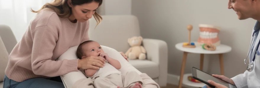 Lors des consultations de suivi, votre pédiatre évalue l’ensemble du développement de votre bébé de 2 mois : tonus, motricité globale, réactions aux stimulations, courbe de croissance, qualité de la succion au sein ou au biberon, et interactions avec vous. La succion du pouce est observée comme un élément parmi d’autres, jamais isolément. Un examen bucco-dentaire sommaire permet également de vérifier l’intégrité des gencives, du frein de langue et du palais.