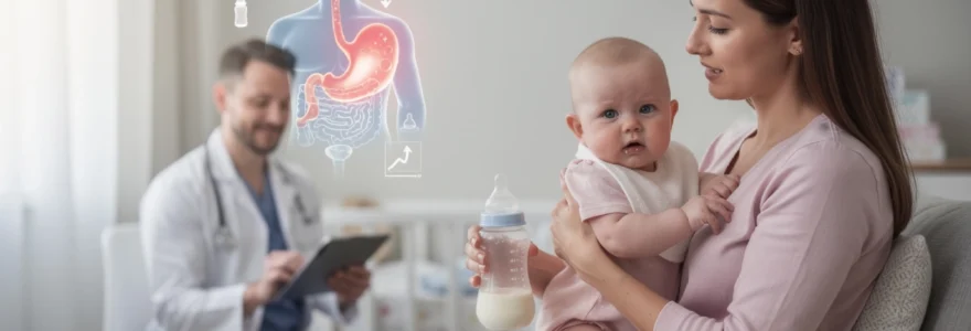 À l’inverse, un lait légèrement plus digeste peut être évacué plus rapidement de l’estomac, réduisant la pression intragastrique et donc la fréquence des remontées. Cela ne signifie pas qu’il faille changer de lait au moindre reflux, mais qu’en cas de régurgitations importantes et de demande fréquente de biberon, votre médecin pourra évaluer l’intérêt d’un lait épaissi ou d’une formule spécifique. Ces adaptations se font toujours sous contrôle médical, notamment pour exclure une allergie aux protéines de lait de vache lorsque d’autres symptômes (eczéma, sang dans les selles, coliques sévères) sont présents.